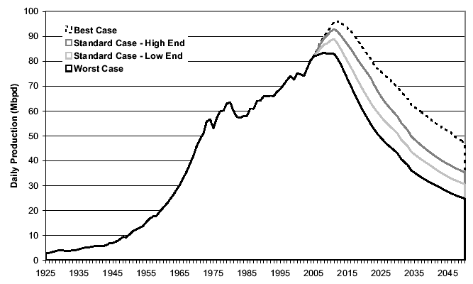 1) Conventional crude production - Latest figures from the Energy Information Administration (EIA) show that crude oil production including lease condensates increased by 62,000 b/d from March to April 2009, resulting in total production of crude oil including lease condensates of 72.04 million b/d. The all time high production record of crude oil stands at 74.82 million b/d reached in July 2008.