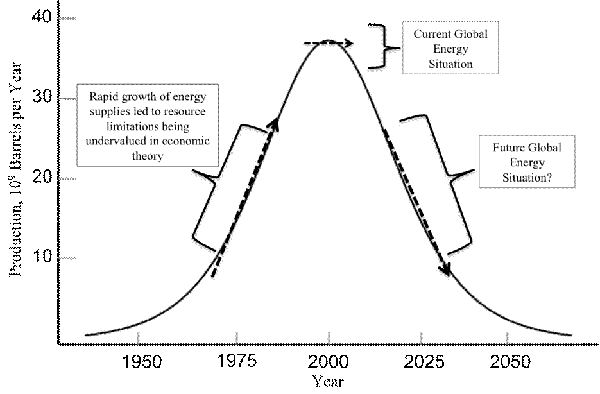 Academics including Charles Hall, Cutler Cleveland, and Howard Odum have explored the relationship between primary energy and economic growth exhaustively. Hall and his graduate student David Murphy graphically depict where we are now as follows: